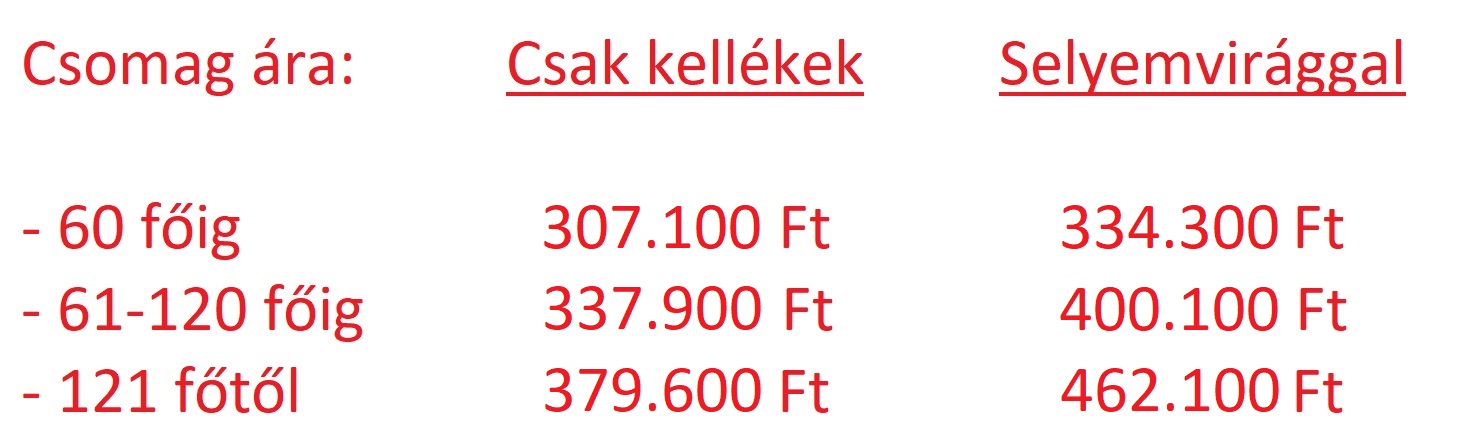 - vendégasztaldísz (a "kellékes" csomag nem tartalmazza!)