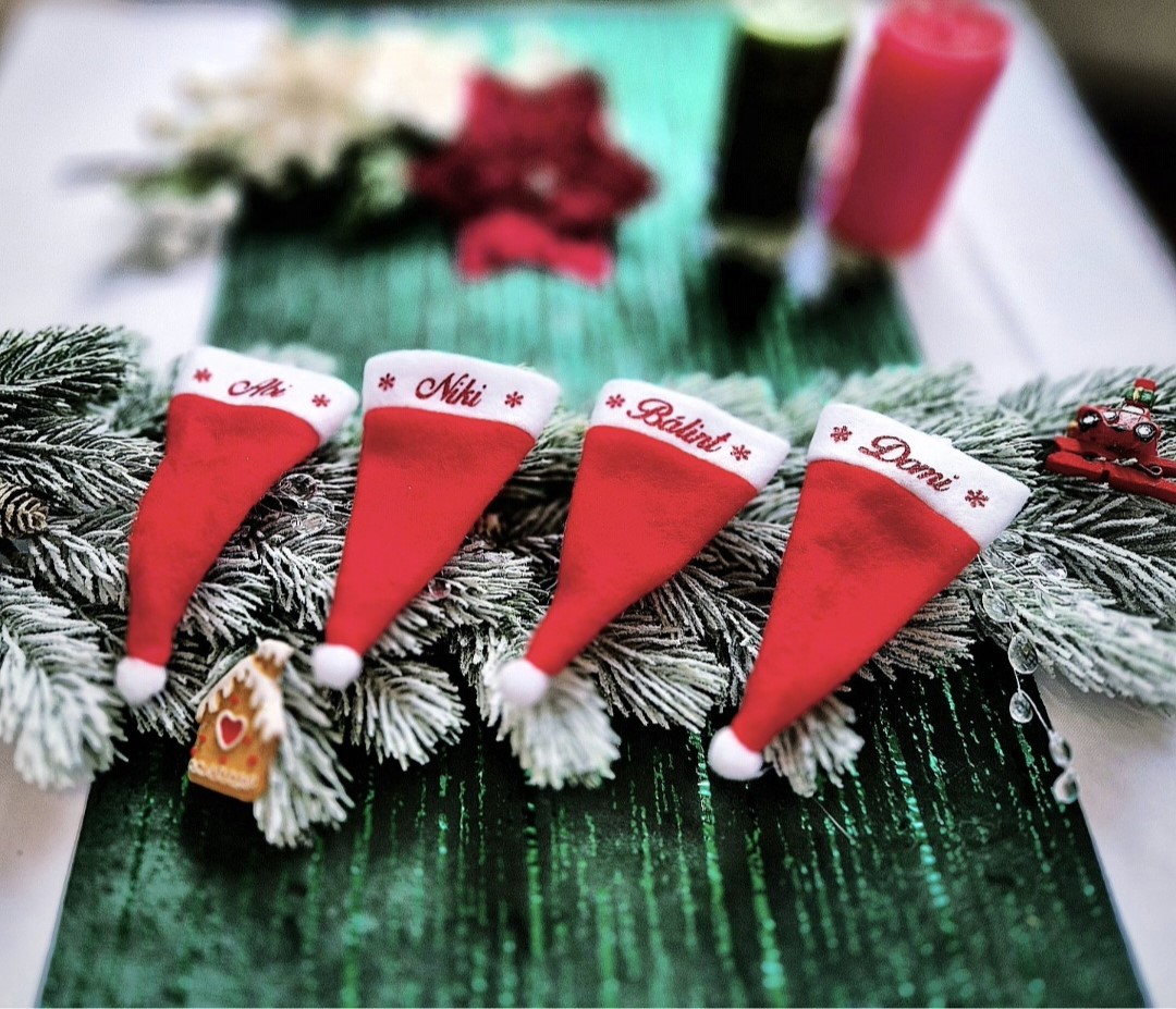 funkcionálnak az ünnepi asztalon. A név feliratozása piros csillámos,