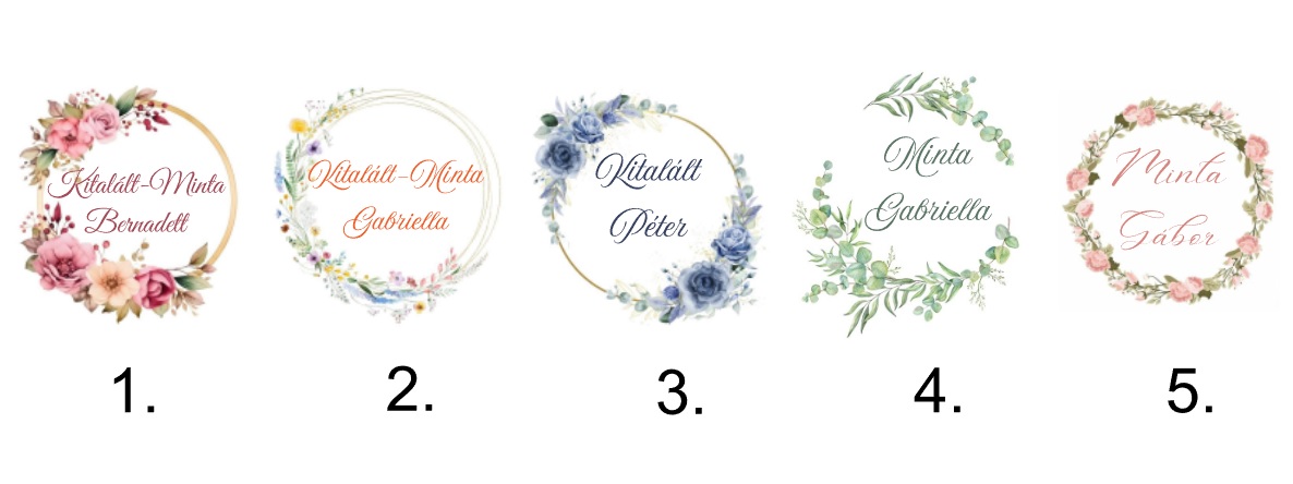 5 különböző grafikából lehet választani, így az esküvői dekorációba