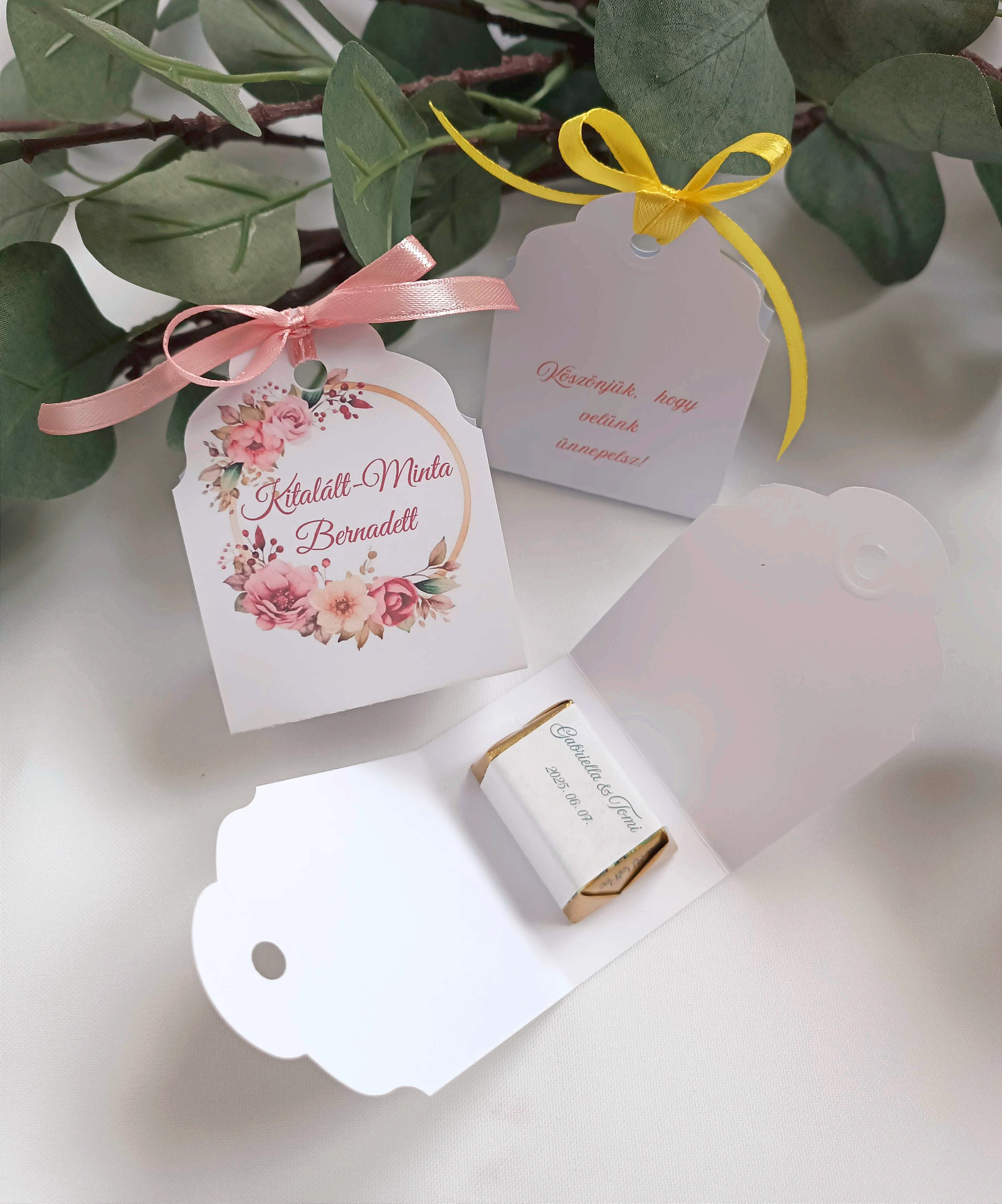 kártyán pedig az egyik oldalon a választott grafika a vendég nevével, a
